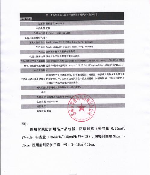 蘇州市蘇普利馬器械有限公司是專業(yè)從事醫(yī)用X射線防護(hù)系列用品、裝置、代理德國(guó)Dr.Goos-Suprema Gmbh.顧斯博士-蘇普利馬有限公司生產(chǎn)的原裝進(jìn)口鉛衣及醫(yī)用觀片燈的生產(chǎn)銷售企業(yè).生產(chǎn)的X射線防護(hù)圍裙均來(lái)自美國(guó)SHIELDING公司的最新型超薄型防護(hù)材料,,具有防護(hù)性能可靠、穿戴舒適、輕便柔軟、操作自如等諸多優(yōu)點(diǎn).產(chǎn)品均通過(guò)相關(guān)X射線檢測(cè)機(jī)構(gòu)的檢測(cè),達(dá)到產(chǎn)品標(biāo)準(zhǔn)的要求.X射線醫(yī)用膠片觀察燈。是采用全LFD燈光技術(shù)。具有重量輕,光源均勻,亮度高,無(wú)頻閃,不變型,使用壽命長(zhǎng)等特點(diǎn)。均取得了生產(chǎn)許可及醫(yī)查看更多>>